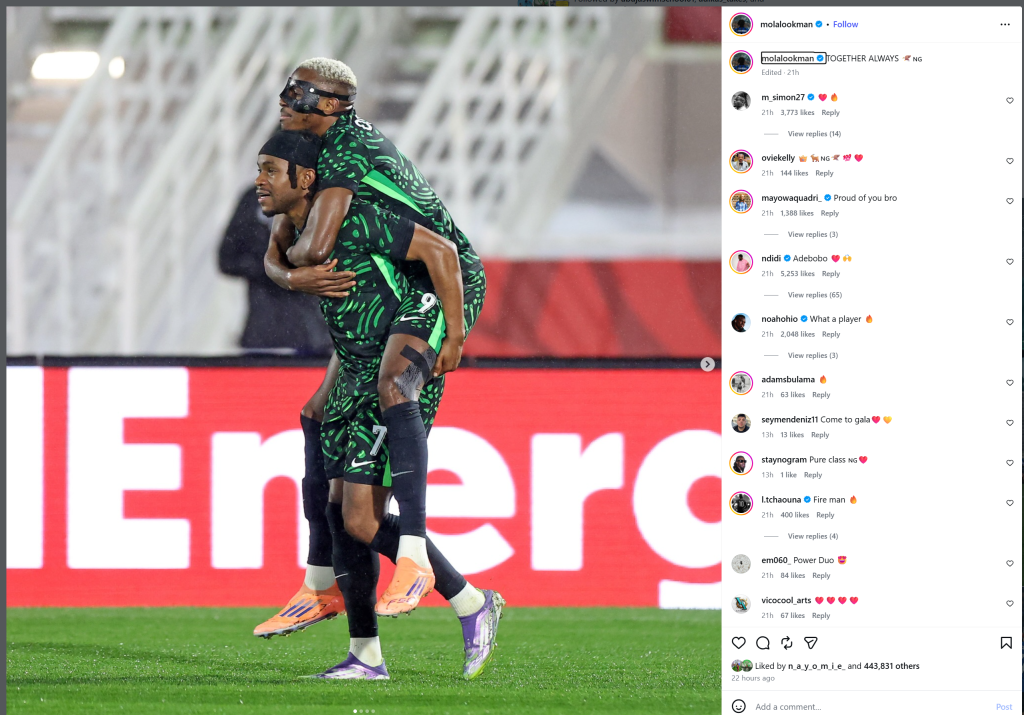 Lookman’s Instagram post now appears to reinforce those claims, offering a public show of unity ahead of Nigeria’s quarter-final clash against Algeria in Marrakesh.
